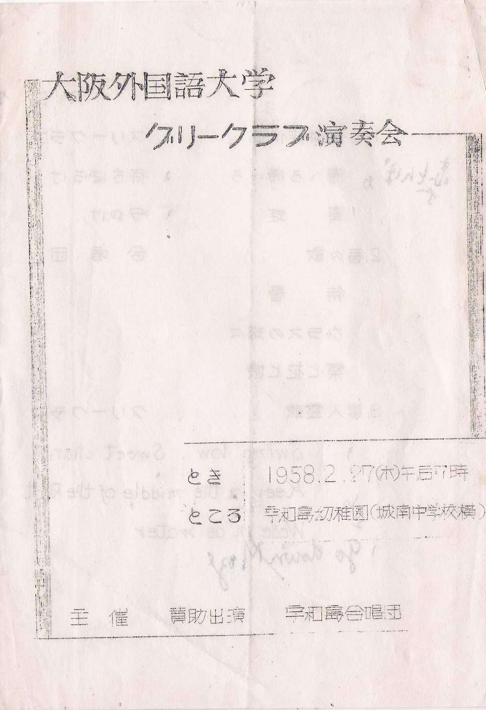 1958/02/27 宇和島演奏会