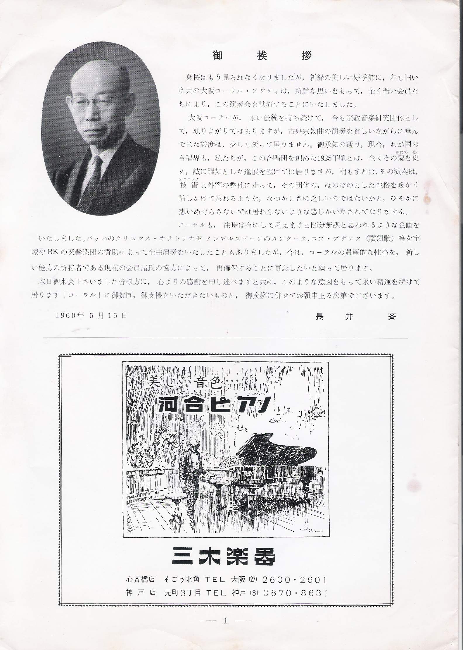 1960/05/15 大阪コーラス・ソサイエティ演奏会 (賛助出演)