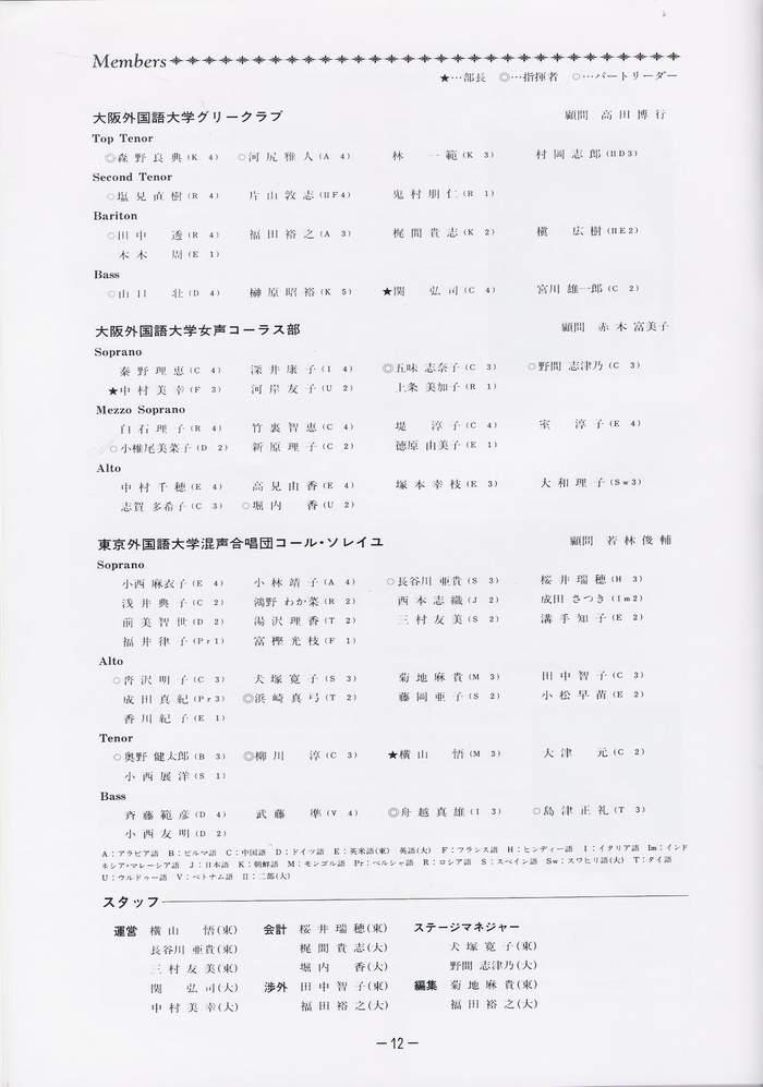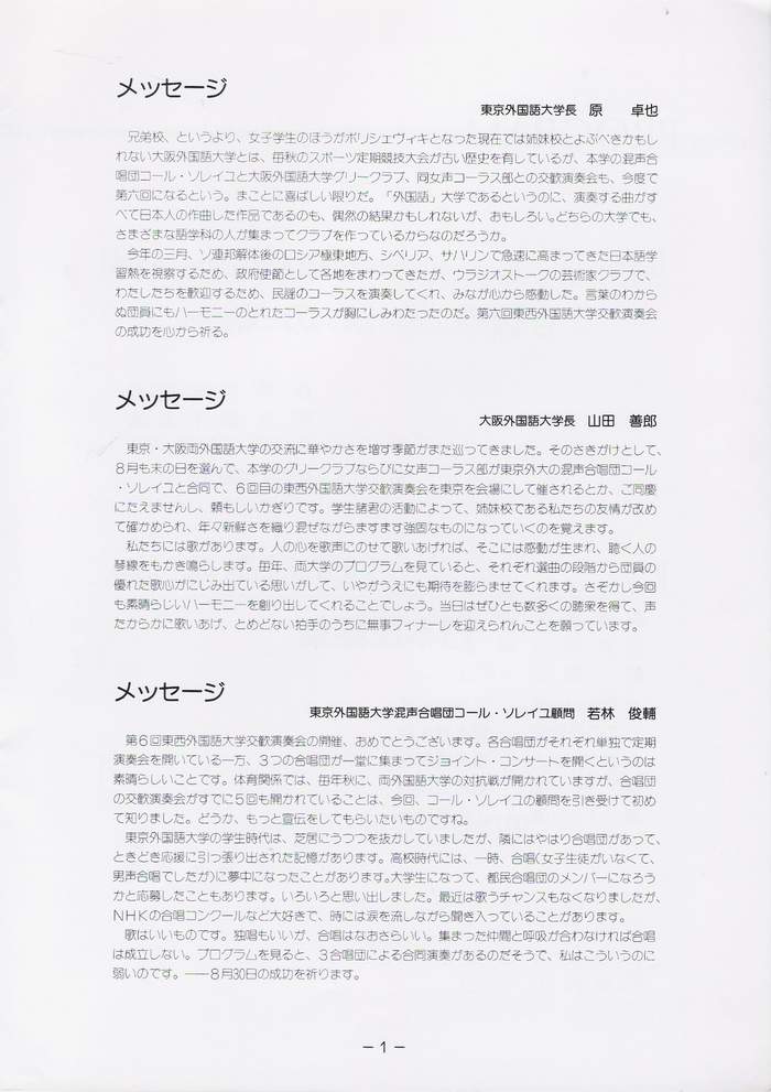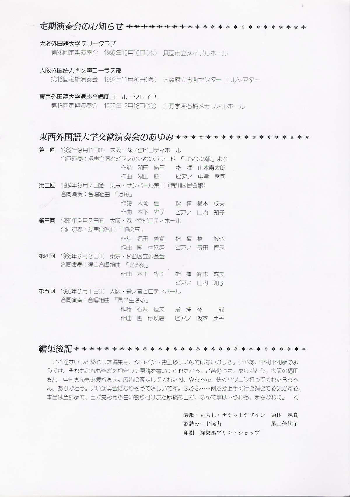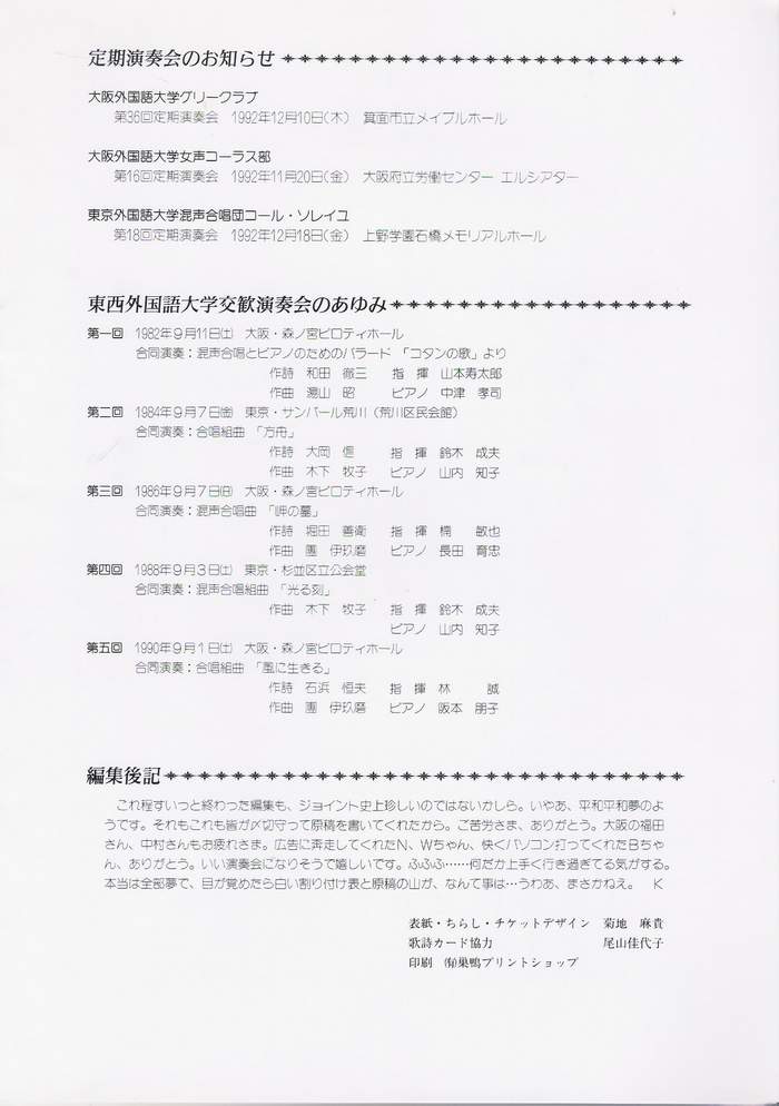 1992/08/30 第6回 東西外国語大学交歓演奏会